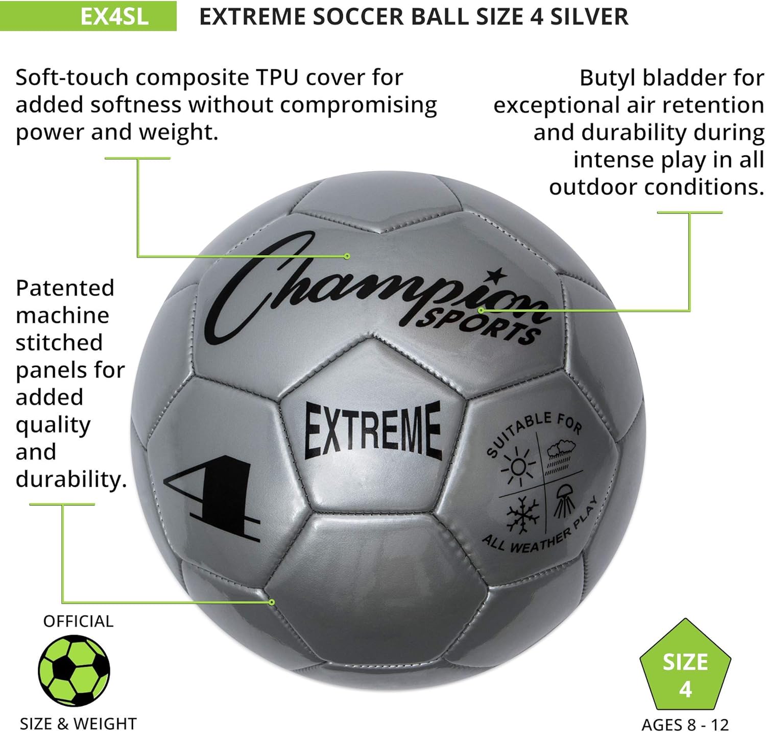 Champion Sports Extreme Soccer Ball Silver