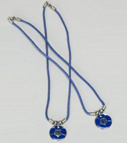Still the most popular team color, this soccer team gift features a soccer charm about the size of a quarter with a number surrounded by silver and royal blue on a royal blue nylon band.